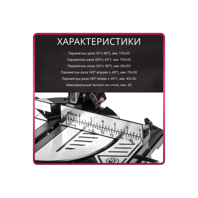 Пропил на столе до 30 мм. Максимальная глубина пропила 55 мм.
