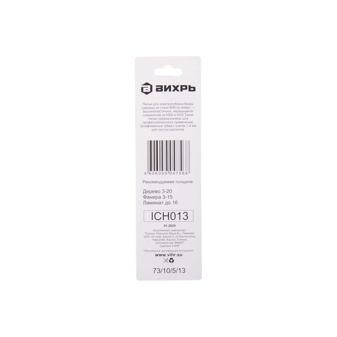 Пилки для лобзика Вихрь Т101АOF 73/10/5/13 по ламинату, чистый рез 76х50мм 2шт