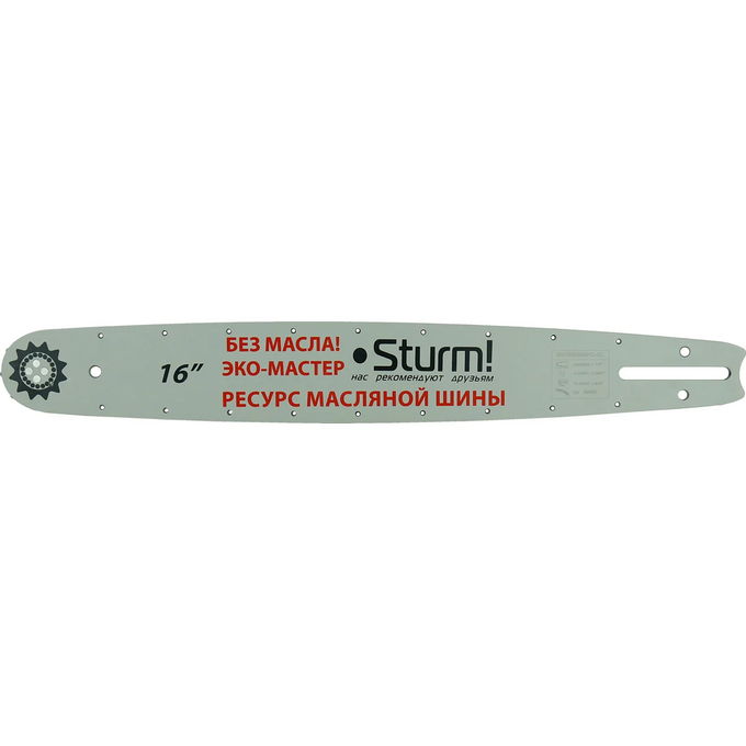 Шины для цепных пил (1.3 мм, 16", 3/8") Sturm SB1650380PO-OL используется с цепью Sturm SC38013CRT-OL-59. Специальная конструкция и покрытие шины позволяет использовать шину и цепь без масла. При этом все составляющие защищены от коррозии и вибрации.