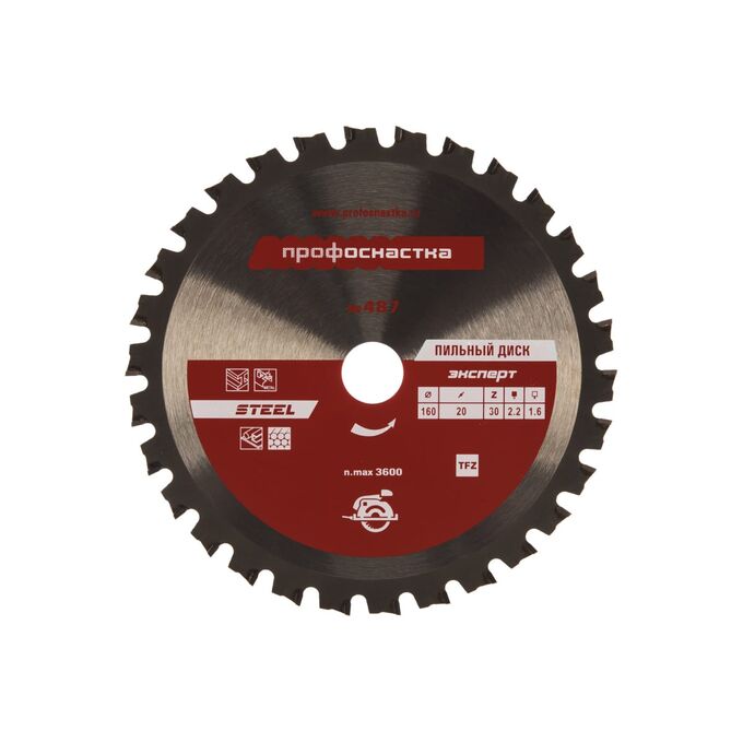 Пильный диск № 487 ПрофОснастка Эксперт 60401007 160xZ30x16/20 TFZ 0 Steel