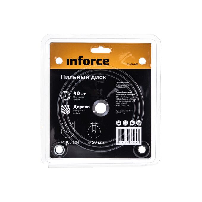 Пильный диск по дереву Inforce 11-01-601 165х20х40