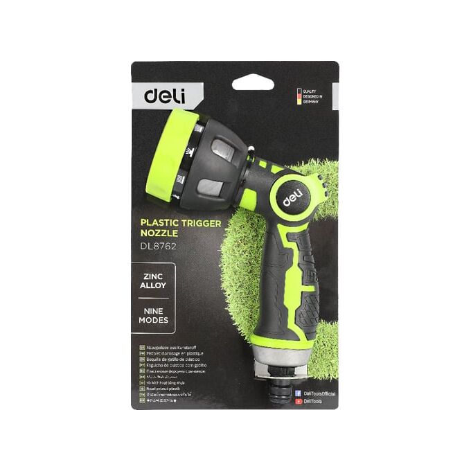 Пистолет-распылитель Deli DL8762 поливочный бескурковый 9 режимов распыления, диаметр шланга 3/4", прорезиненная рукоять