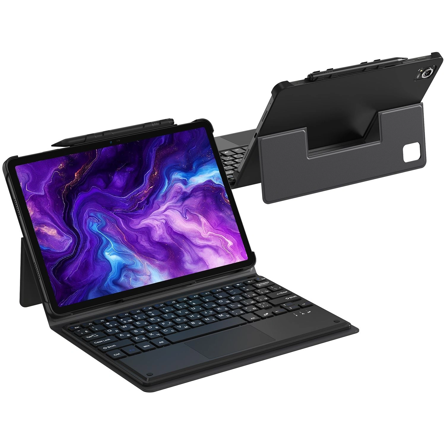 Сетевой адаптер питания; USB-C кабель; активный стилус; набор наклеек; салфетка для экрана; скрепка для извлечения SIM-карты; клавиатура; защитный чехол