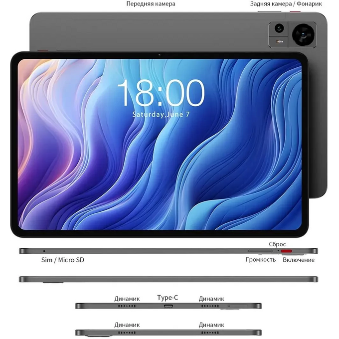 Планшет TECLAST T60 Premium set 8/256 GB 4G, 11.97" чехол-клавиатура, серый