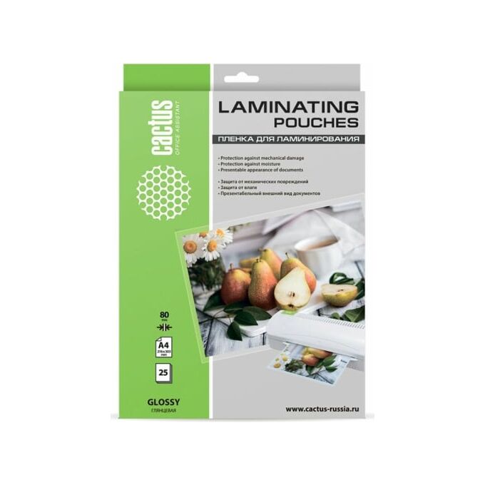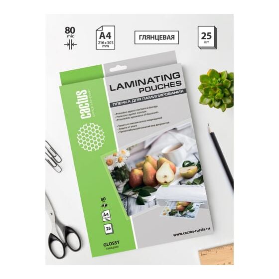 Пленка для ламинирования Cactus CS-LPGA48025 216x303мм 80мкм A4 25шт глянцевая