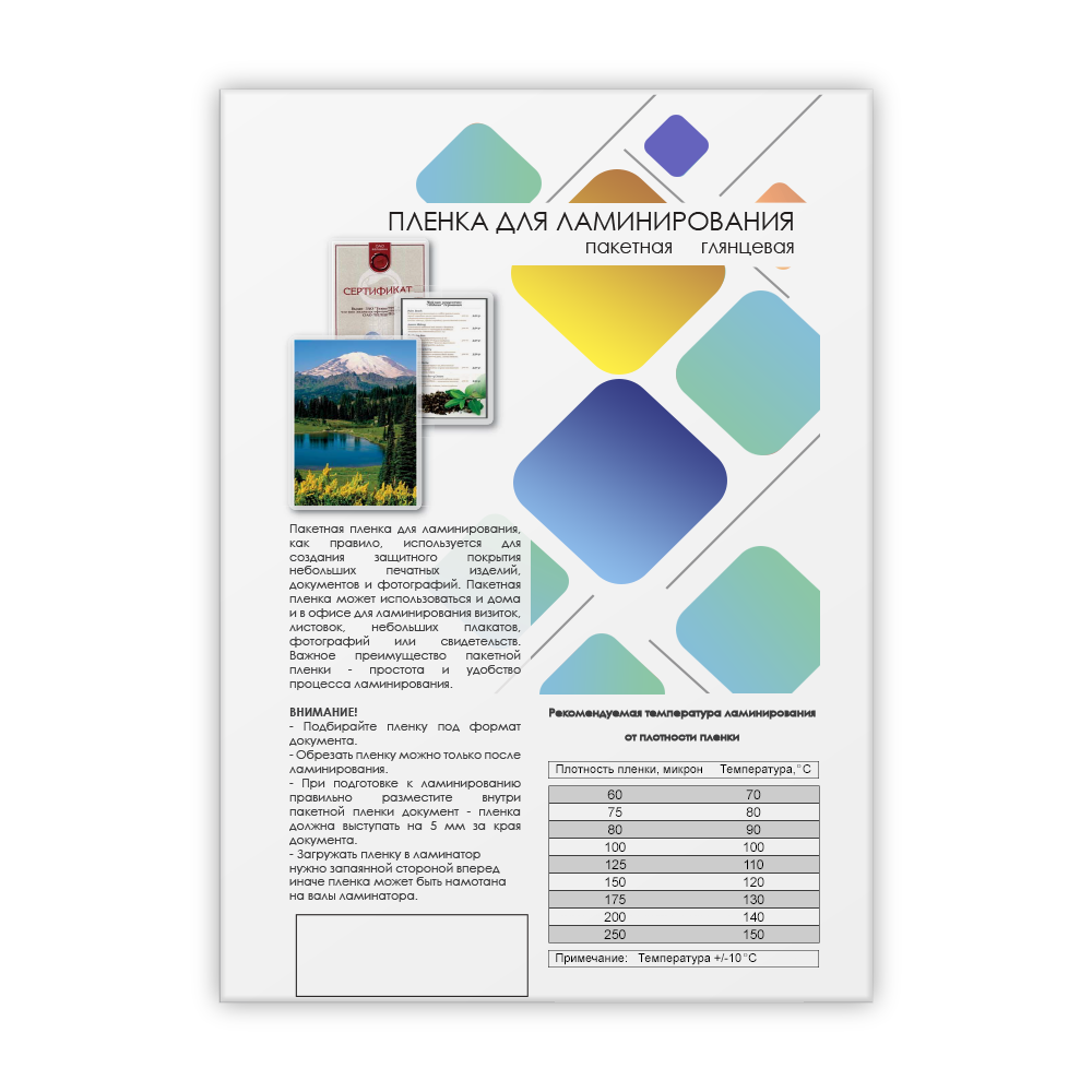 Пленка для ламинирования A4, 216х303 (250 мкм) глянцевая 100шт, ГЕЛЕОС [LPA4-250]