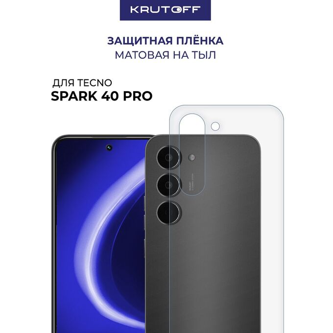 Пленка защитная гидрогелевая Krutoff для TECNO Spark 40 Pro задняя сторона (матовая)