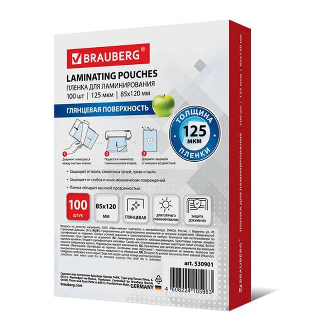 Пленка для ламинирования BRAUBERG надежно защитит документы от влаги, пыли, воздействия УФ-лучей и других внешних факторов.