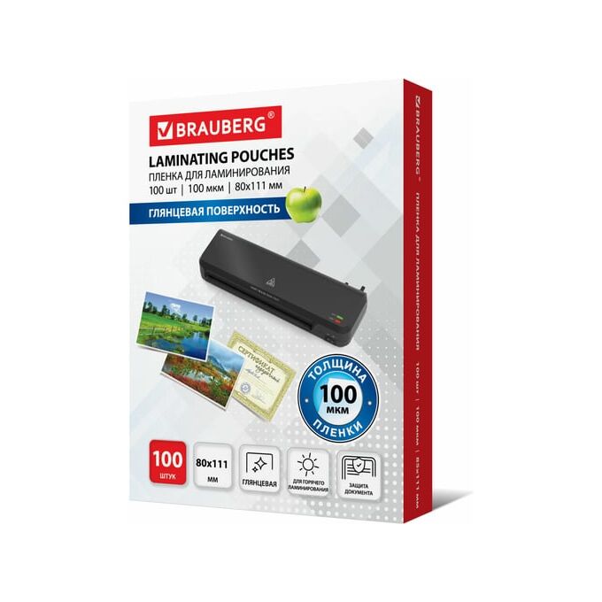 Пленка для ламинирования BRAUBERG надежно защитит документы от влаги, пыли, воздействия УФ-лучей и других внешних факторов.