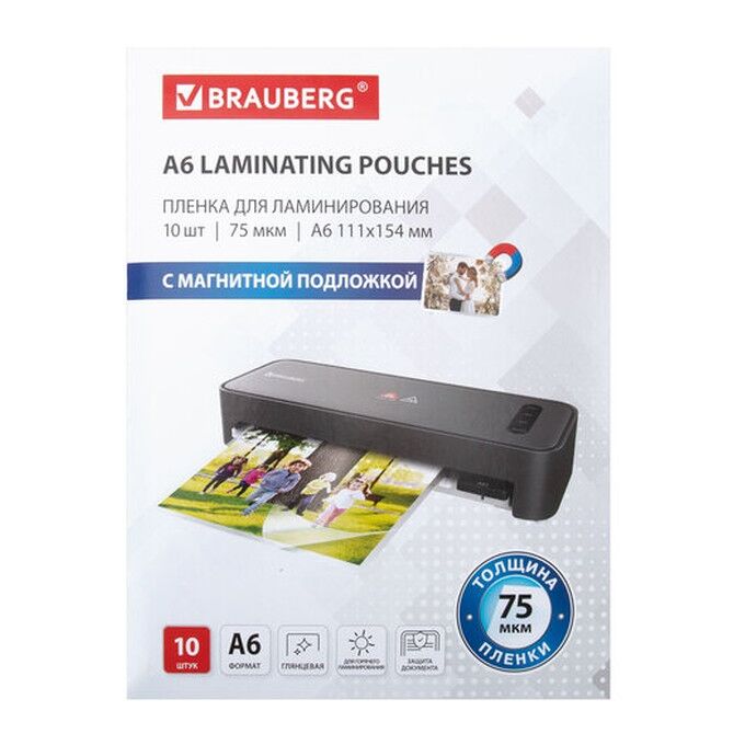 МАГНИТНАЯ пленка для ламинирования BRAUBERG надежно защитит документы от всех внешних воздействий. Благодаря магнитному слою, после ламинирования плёнку можно разместить на магнитной доске в школе, на холодильнике, или другой подходящей поверхности.