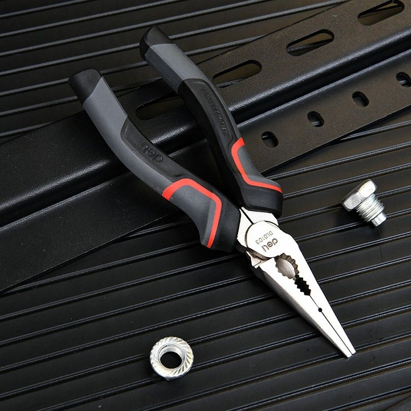 Плоскогубцы Deli DL0104 удлиненные 200мм, Cr-V, эксцентриковый шарнир, антикоррозийное покрытие, трехкомпонентная пр