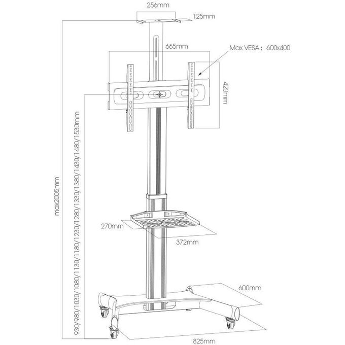 Поддержка крепления VESA 100×100, 200×100, 200×200, 200×300, 300×200, 400×200, 300×300, 400×300, 400×400, 600×400