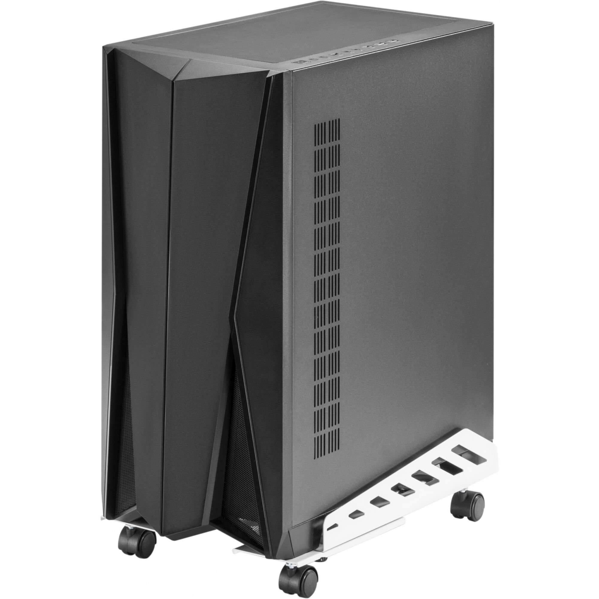 Подставка для системного блока CS-CCB-02GY сделана из высококачественной стали. Раздвижные элементы позволят уместить блок до 30 см в ширину и до 51 см в длину, а для удобного перемещения имеются 4 колёсика, на двух из которых установлены стопперы, чтобы зафиксировать блок на месте. Подставка спокойно выдержит вес компьютера до 25 кг