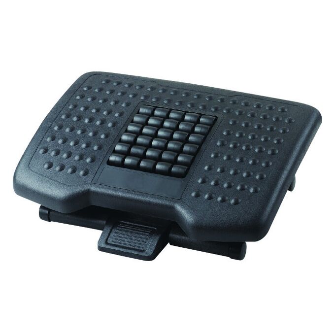 Эргономические свойства: Наклон подставки варьируется от 0 до 30 градусов, Ручная регулировка высоты на 3 позиции: 110, 140, 170 мм, Платформа больших размеров: 455 х 330 мм, Массажные ролики в центре платформы