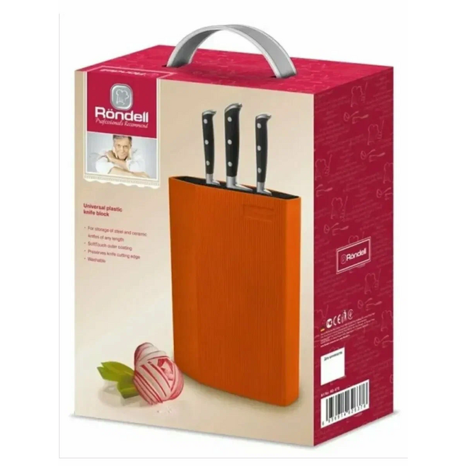 Подставка для ножей Rondell Orange RD-470 оранжевого цвета — универсальная подставка для 5–6 ножей или других кухонных аксессуаров.