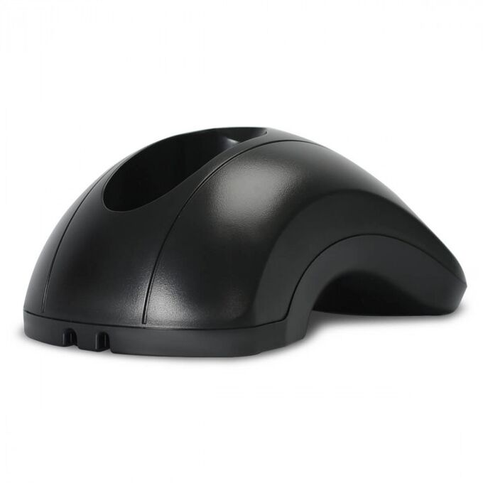Конструкция сделана из прочного пластика. Форма корпуса гарантирует ее устойчивость. Нижняя часть основания не скользит на любых поверхностях. За надежное крепление устройства отвечает магнитный фиксатор. Прибор легко устанавливается на держатель и быстро извлекается из слота. Возможна перенастройка на работу через USB-COM с помощью настроечного штрих-кода.