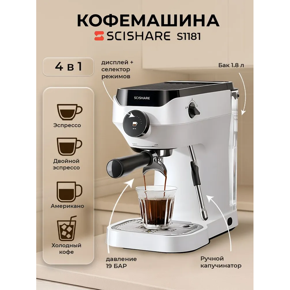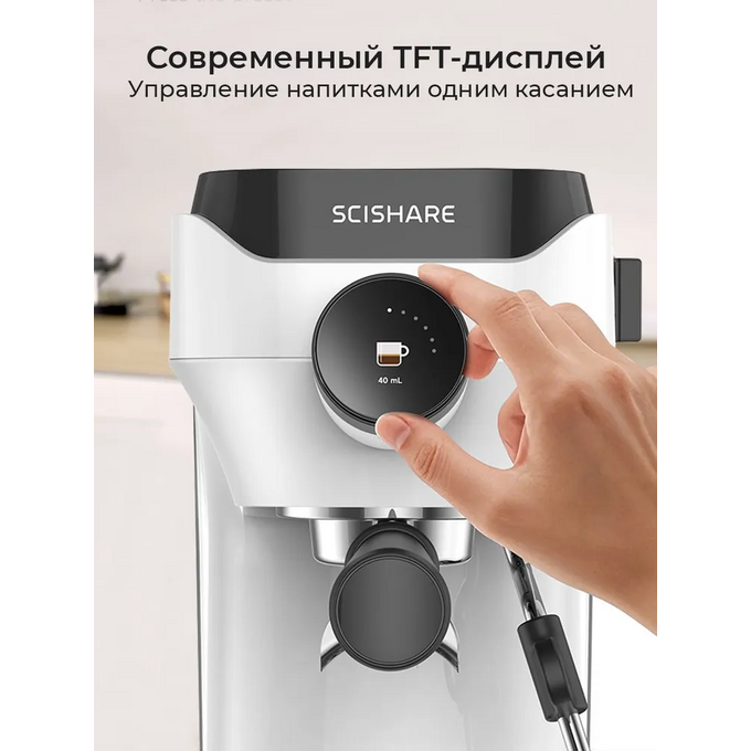 Полуавтоматическая кофемашина Xiaomi Scishare S1181(ULKA 19 бар/1.8L/Дисплей TFT/1450Вт/нержавеющая сталь) EU White