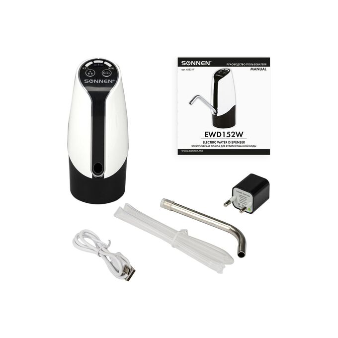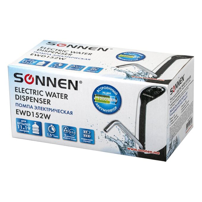 Помпа для воды электрическая SONNEN EWD152W (455217) 1,5л/мин, 2 режима, аккумулятор, адаптер, пластик