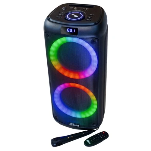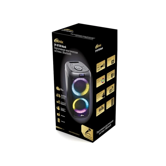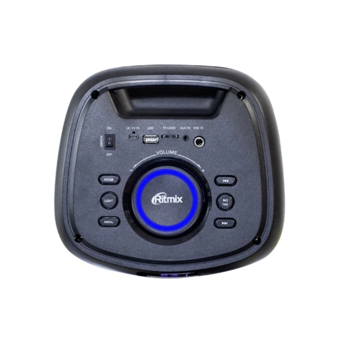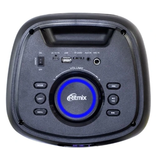 Ritmix SP-875B - портативная Bluetooth-колонка, имеющая AUX-вход, один 6.3 мм вход для микрофона и встроенный FM-радиоприемник, а также способная воспроизводить музыку с карточки microSD или USB-флешки.