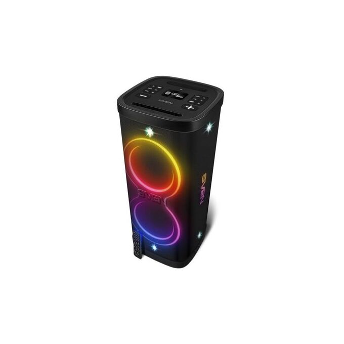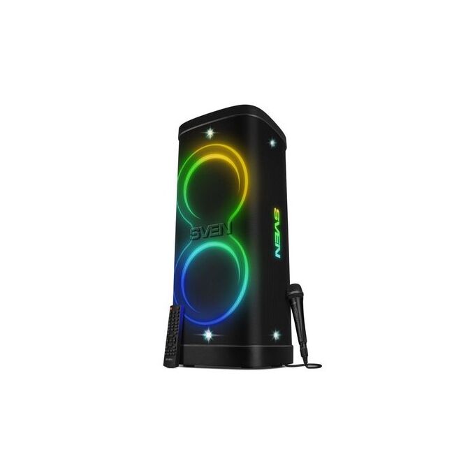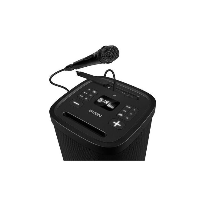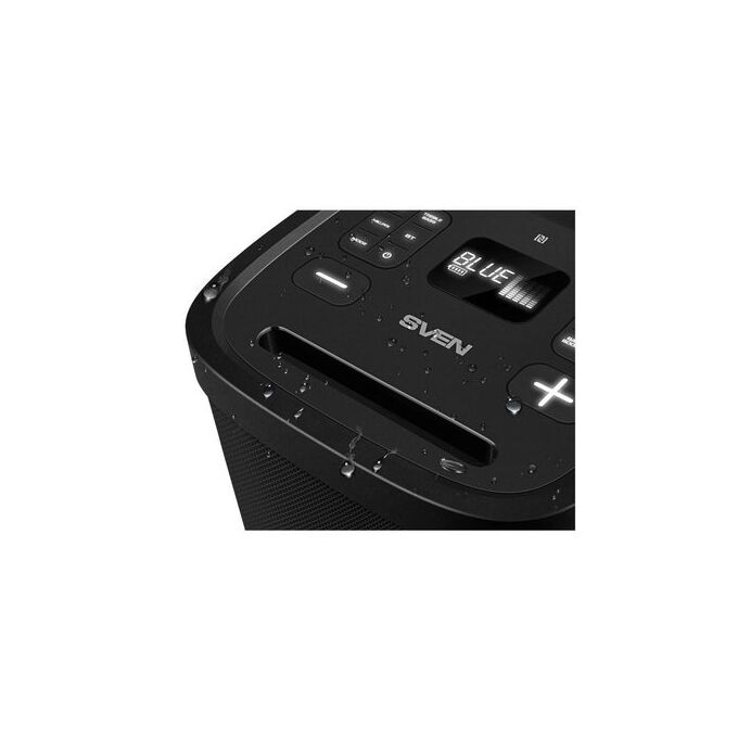 Портативная акустика SVEN PS-1250, черный (300 Вт, TWS, IPx4, Bluetooth, FM, USB, microSD, дисплей, 13500мА*ч)