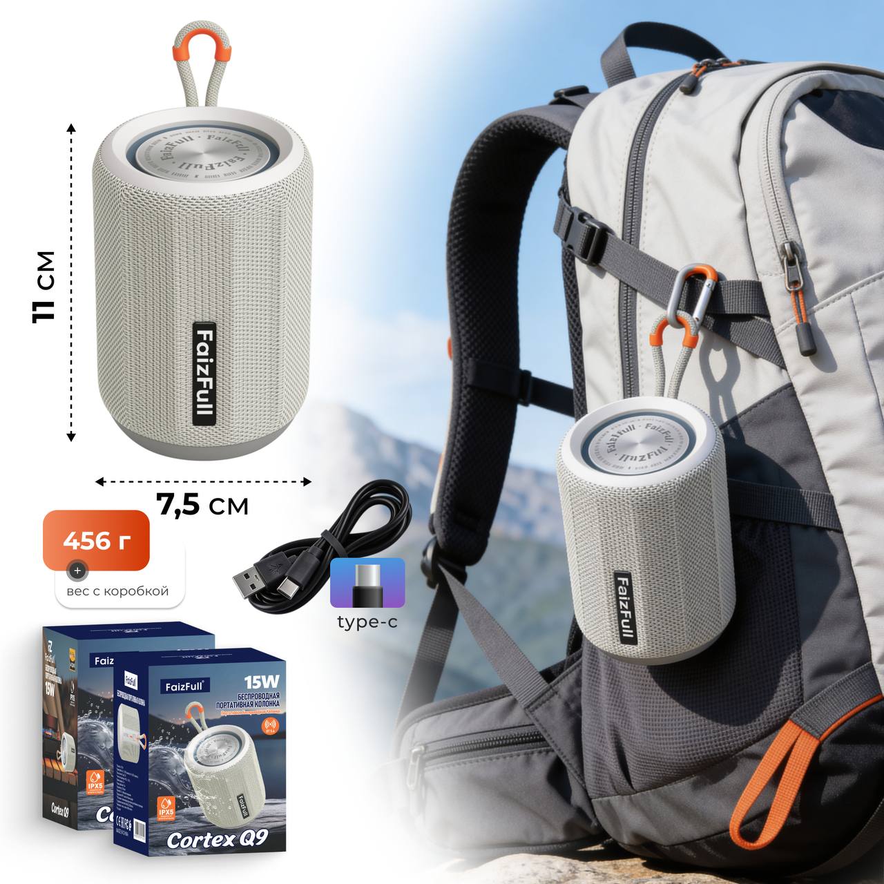 Портативная колонка FaizFull Cortex Q9 White 15W RGB IPX5 BT5.4