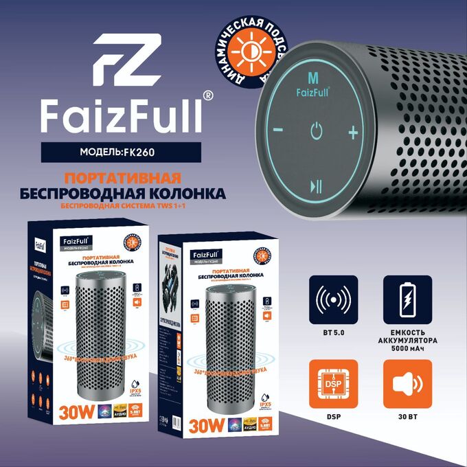 Портативная колонка FaizFull FK260 Чёрный 30W IPX5 BT5.3 TWS (Корпус Алюминиевый)