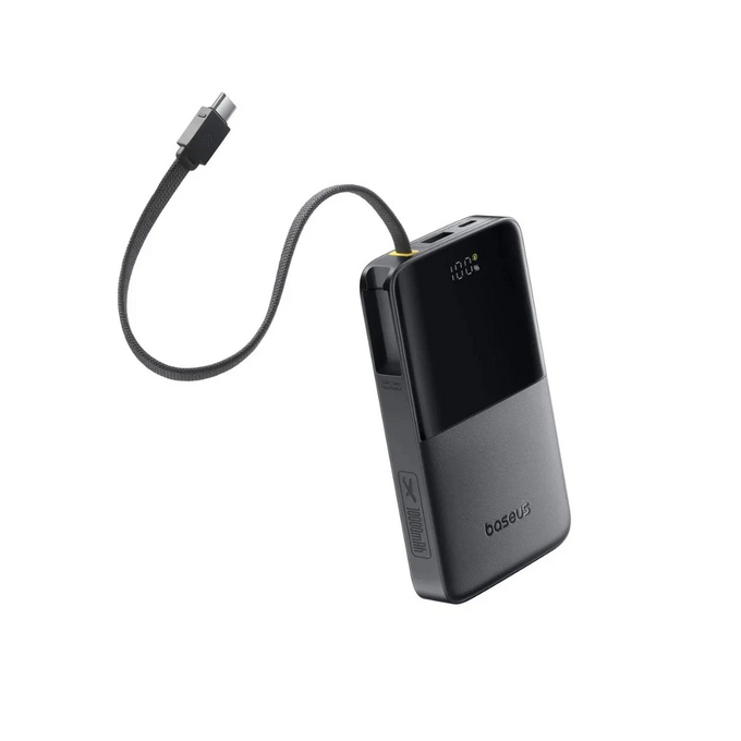 Портативный аккумулятор 10000 мАч EnerFill FC51 Bipow2 Pro Digital Display PPBD2-1W20 — это мощное и компактное зарядное устройство, которое обеспечит энергией ваши гаджеты в любом месте. Его ключевая особенность — встроенный плетеный кабель USB-C, который отличается повышенной прочностью и не путается, что избавляет от необходимости носить с собой дополнительные провода. Зарядное устройство поддерживает быструю зарядку мощностью 22.5W через порт Power Delivery (PD), что позволяет одновременно заряжать до трех устройств, например, смартфон, планшет и наушники. Удобный цифровой LED-дисплей точно отображает текущий остаток заряда в процентах, поэтому вы всегда будете знать, когда потребуется подзарядка самого пауэрбанка.