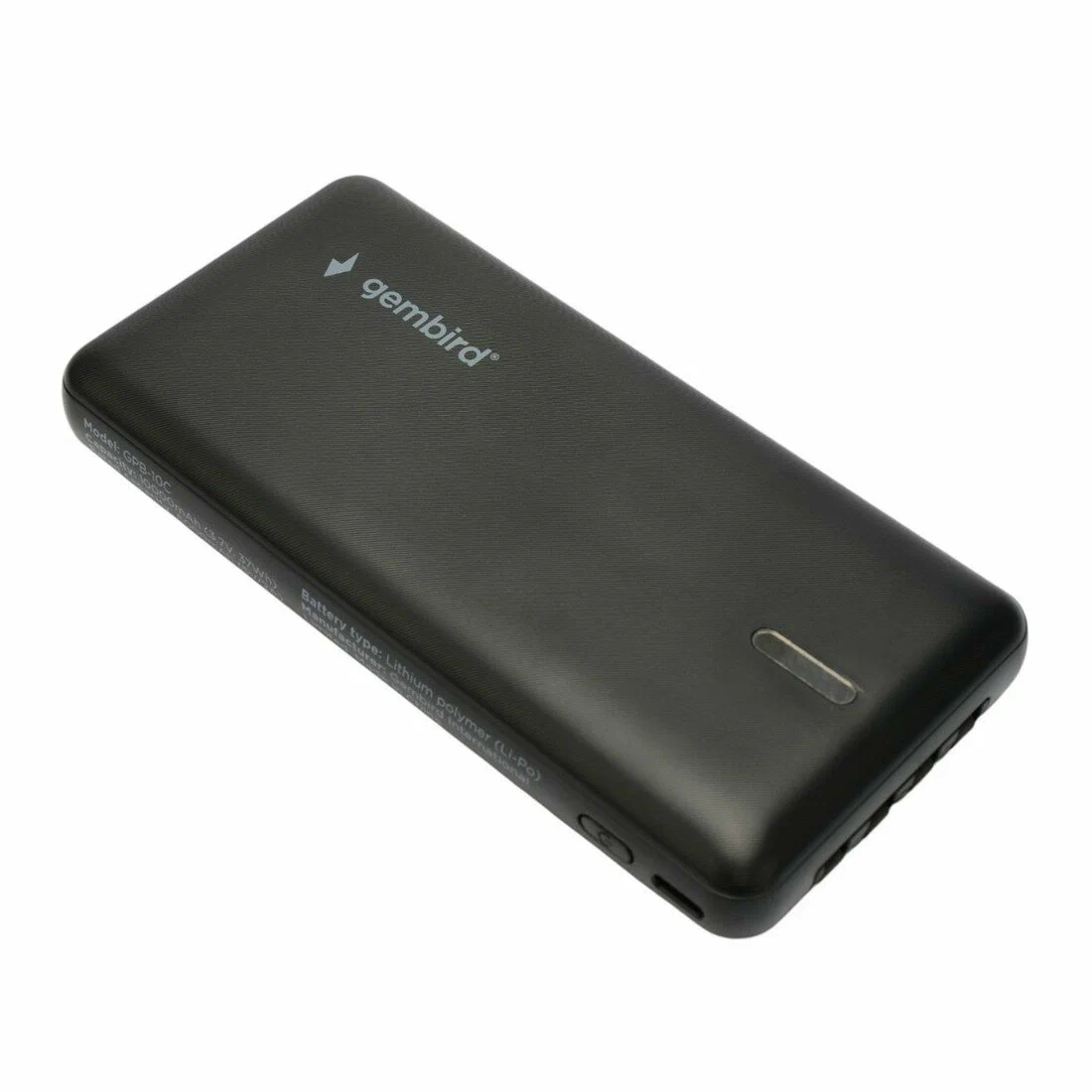 Этот компактный внешний аккумулятор Gembird GPB-10C объёмом 10000 мАч основан на литий-полимерной технологии, что гарантирует стабильность и безопасность при эксплуатации. Чёрный пластиковый корпус с размерами 140x68x20 мм сочетает в себе прочность и мобильность. Особенностью модели стали четыре встроенных кабеля — Lightning, micro USB, USB 2.0 и USB Type-C, устраняющих нужду в дополнительных аксессуарах.