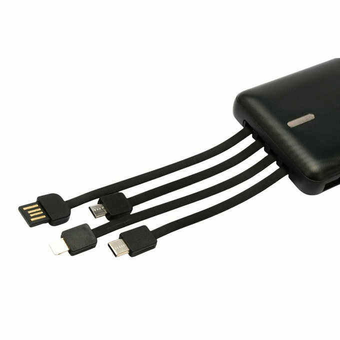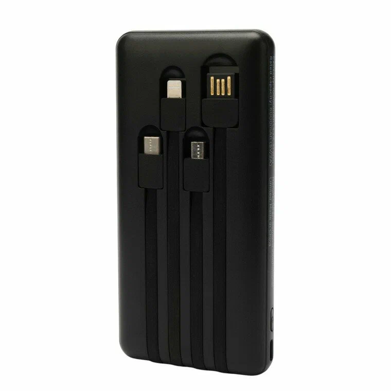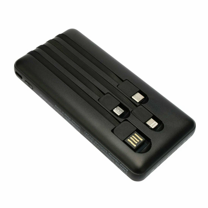 Портативный аккумулятор Gembird GPB-10C 10000мАч, 2A, 4 встр.кабеля, черный
