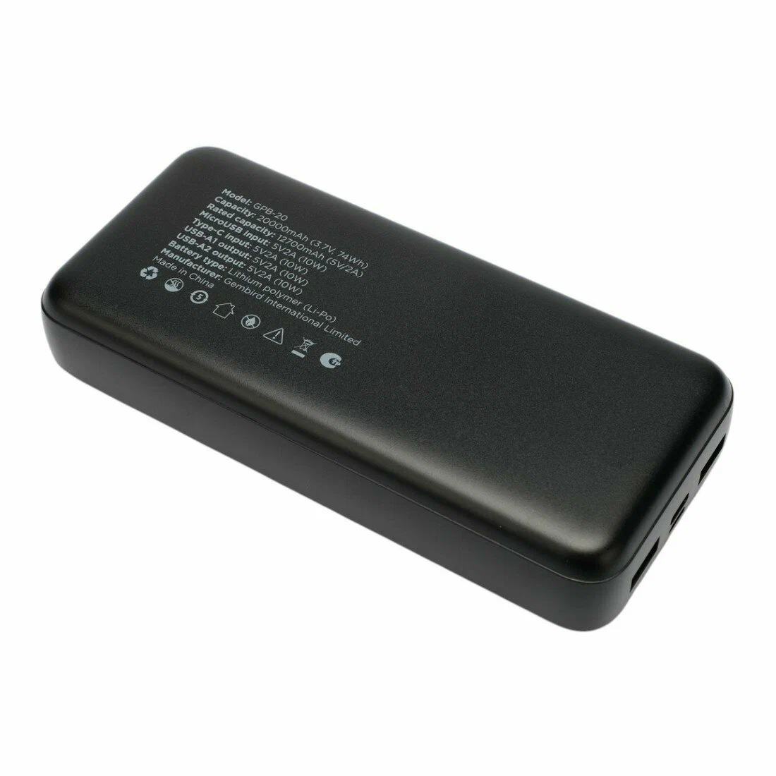 Портативный аккумулятор Gembird GPB-20 20000мАч, 2A, черный