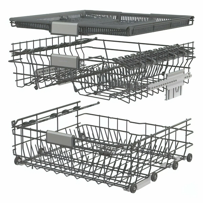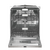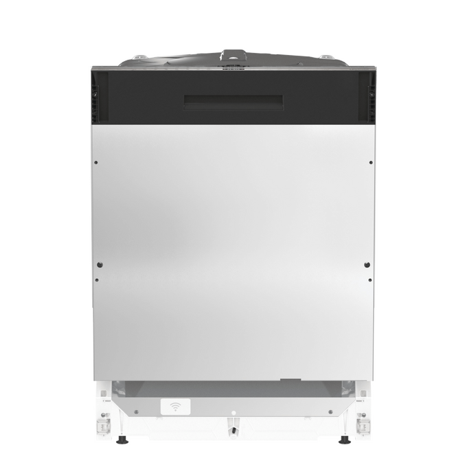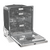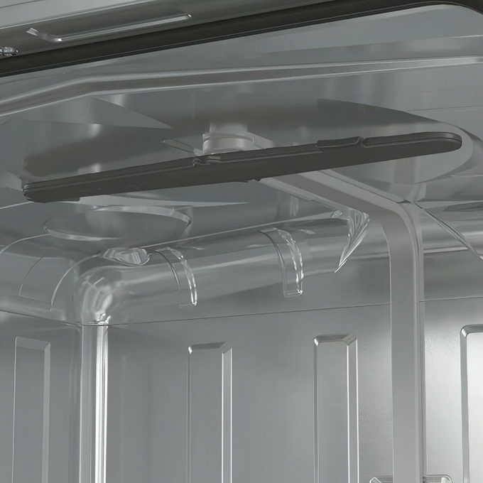 Откидная дверца с расположенным в верхней торцевой части сенсорным блоком управления открывает доступ в камеру из нержавеющей стали с подсветкой и тремя пластиковыми разбрызгивателями. Максимальная температура воды на заливе — 70°C. Для размещения посуды предусмотрены верхняя, нижняя корзины, выдвижной лоток для столовых приборов, съемная подставка для бокалов.