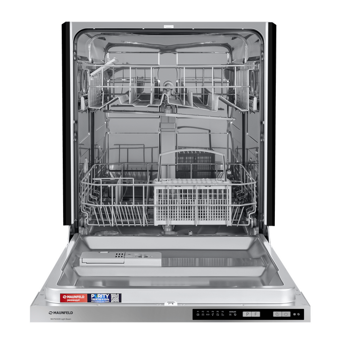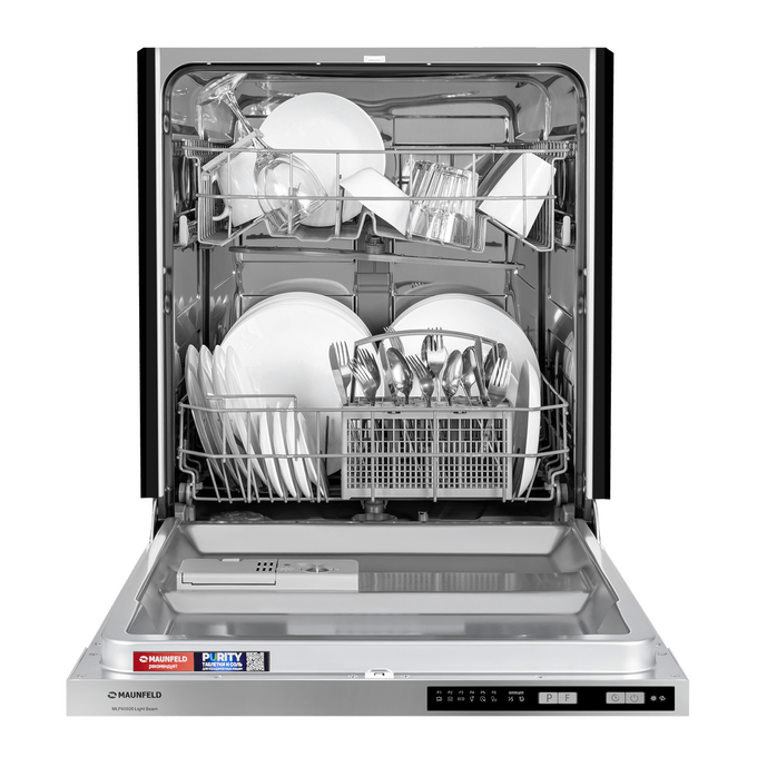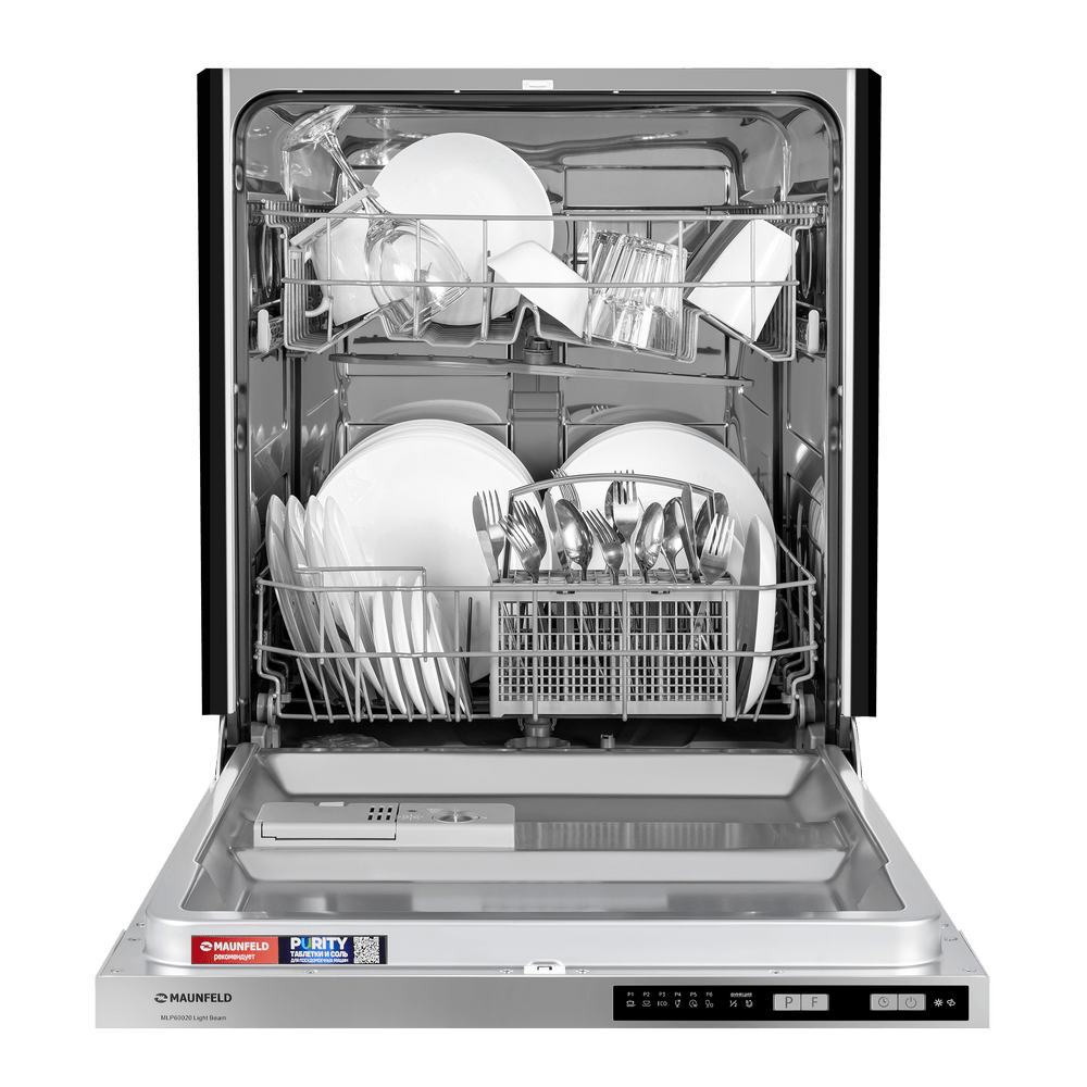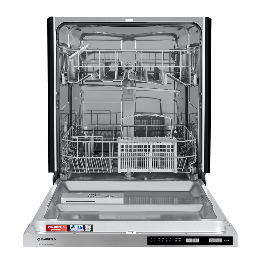 MAUNFELD MLP60020 Light Beam — полноразмерная встраиваемая посудомоечная машина, которая избавит вас от необходимости мыть посуду вручную . Вместимость — до 12 комплектов посуды. За раз можно помыть сразу много посуды — это оценят большие семьи и те, кто любит готовить или часто принимает гостей. В машине максимально эффективно организовано внутреннее пространство. Есть удобная корзина для столовых приборов и мелкой утвари. Верхняя корзина — с изменяемой высотой установки, чтобы можно было мыть посуду разного размера и объёмов. В верхней корзине есть складные держатели для бокалов — дополнительное важное удобство. Предусмотрены несколько программ мытья для посуды разной степени загрязнения. Посудомоечная машина MAUNFELD MLP60020 Light Beam— помоет посуду без вашего участия, освобождая время для более приятных занятий.