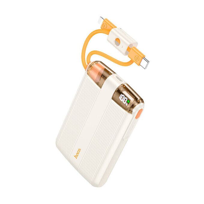 Power bank Hoco J127 Mecha dual PD20W With cable and Digital Display mini 10000mAh Milky white
