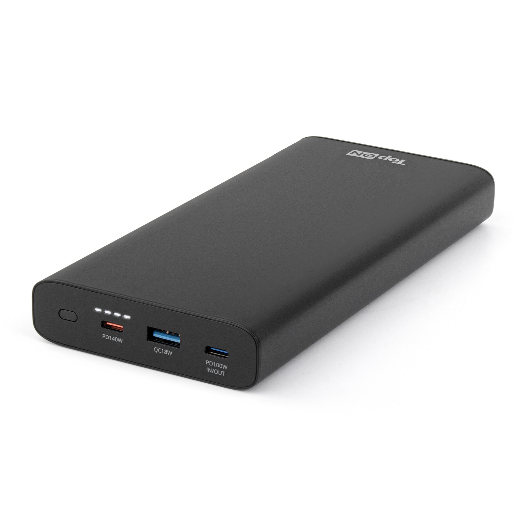 Внешний аккумулятор TopON TOP-T140 для зарядки ноутбуков, смартфонов и другой цифровой техники. USB-C PD100W: 5V-20V~5A PD 100W (PPS 3.3V-11V~3A, 3.3V-21V~3A). USB-C PD140W: 5V-28V~5A PD3.1 140W. USB QC18W: 5V~3A, 9V~2A, 9V-12V~1.5A QC3.0 18W. Протоколы быстрой зарядки PD3.1, PPS, QC3.0 и др.