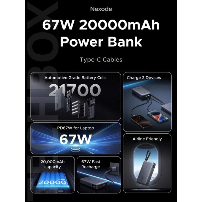 Внешний аккумулятор Ugreen PB550 (55996B) с емкостью АКБ 20000mAh предлагает идеальное решение для зарядки ваших устройств в любое время и в любом месте. Оснащённый функцией быстрой зарядки, он поддерживает технологии Power Delivery и предоставляет мощность до 67W, что позволяет вам быстро восстановить заряд вашего смартфона, планшета или другого устройства.