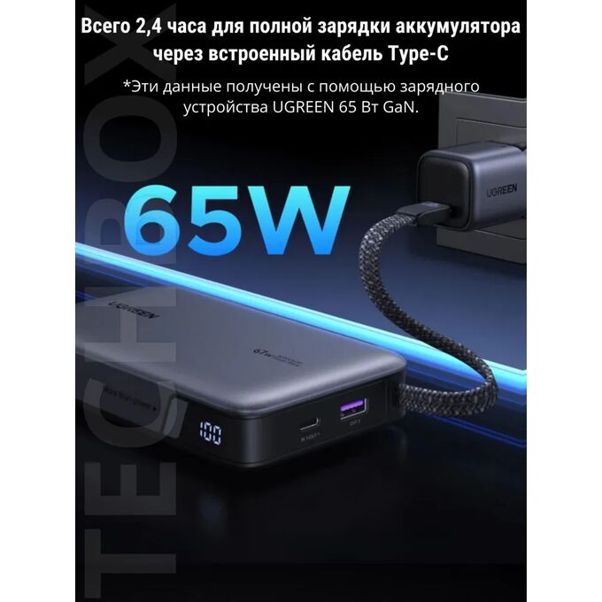 Внешний аккумулятор UGREEN PB550 (55996B) 67W 20000 mAh USB-C&USB-A&USB-C Cable Built-in Cable Space Gray