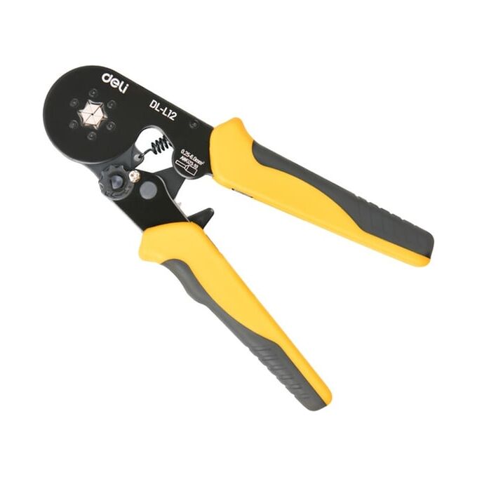 Пресс-клещи Deli DL-L12 предназначены для обжима наконечников НШВИ сечением от 0,25 до 6 кв.мм, что делает их универсальным решением для электромонтажных работ.