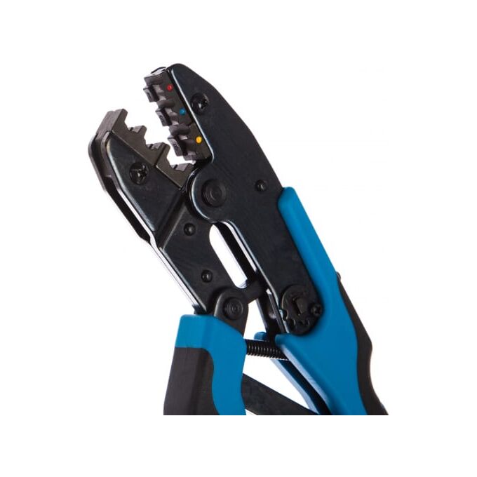 Пресс-клещи КВТ CTB-01 55910 надежны и удобны в работе. Они пригодятся для опрессовки изолированных наконечников и разъемов НКИ, НВИ, НИК, НШКИ, НШПИ, ГСИ, РППИ-М, РПИ-П, РПИ-М, РШИ-П, РШИ-М, РПИ-О и РПИ-НТ. Инструмент имеет храповый механизм, который обеспечивает блокировку обратного хода до прекращения полного цикла опрессовки. Благодаря удобным удлиненным рукояткам можно работать двумя руками.