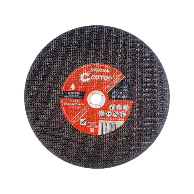 Профессиональный специальный диск отрезной по металлу для резки железнодорожных рельсов CUTOP Special 50-555 Т41-355x4,0x25,4 мм