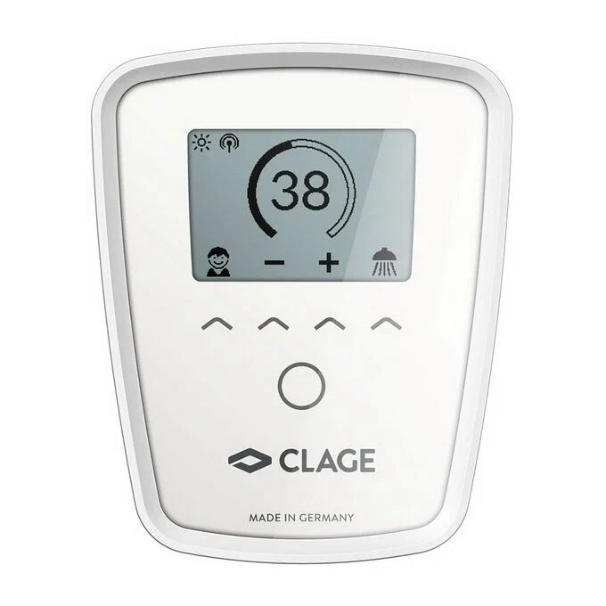 CLAGE DEX Next S имеет электронный принцип управления, что обеспечивает равномерную подачу воды заданной температуры на все точки потребления при условии достаточной мощности прибора для прогрева потока. Температурный режим, который может быть установлен пользователем, составляет от +20°C до +60°C, а точность поддержания температуры не превышает значения в один градус. Корректировка уровня нагрева осуществляется с помощью сенсорного дисплея, через пульт дистанционного управления или с помощью приложения Smart Control, установленного на планшет или смартфон под iOS/Android.
