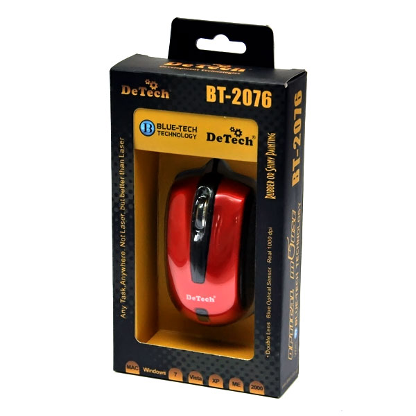 Проводная оптическая мышь DeTech BT-2076 с высокоточным оптическим датчиком и новой технологией Double LENS обеспечивает плавное и высокоточное отслеживание курсора. Работает на большинстве поверхностей.