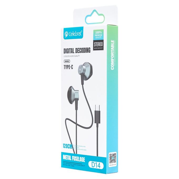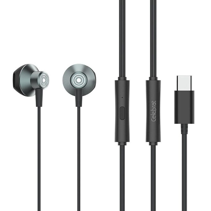 Проводные наушники с микрофоном вкладыши Celebrat D14 Type-C (black) (243932)