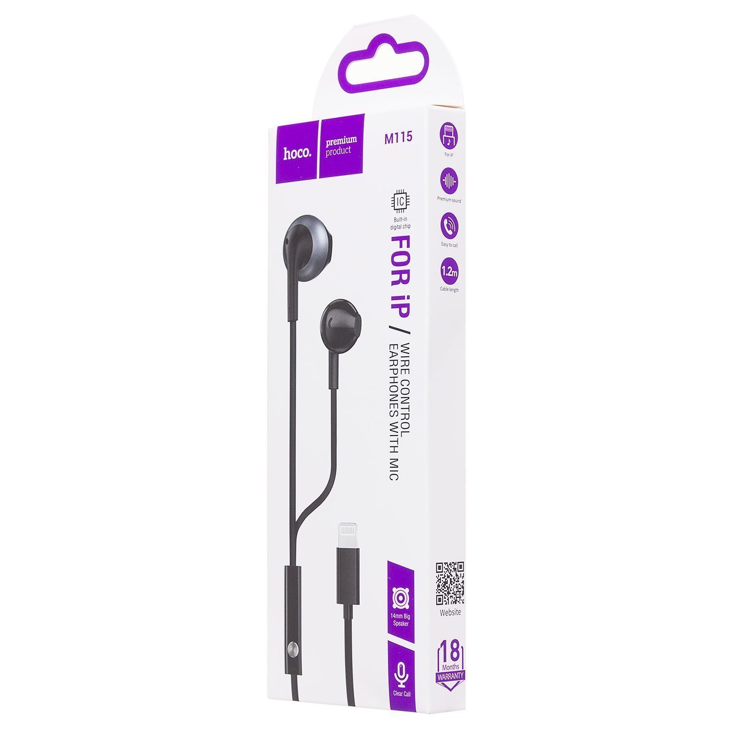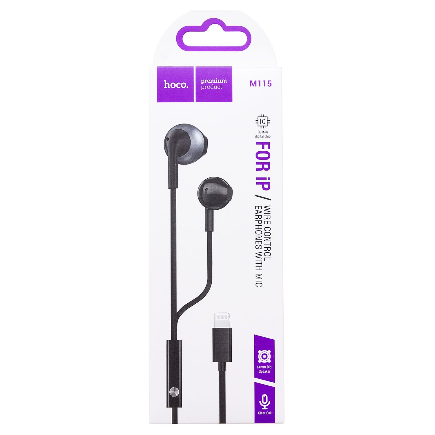 Проводные наушники с микрофоном вкладыши Hoco M115 Lightning (black) (236050)