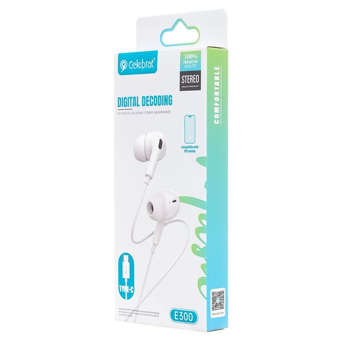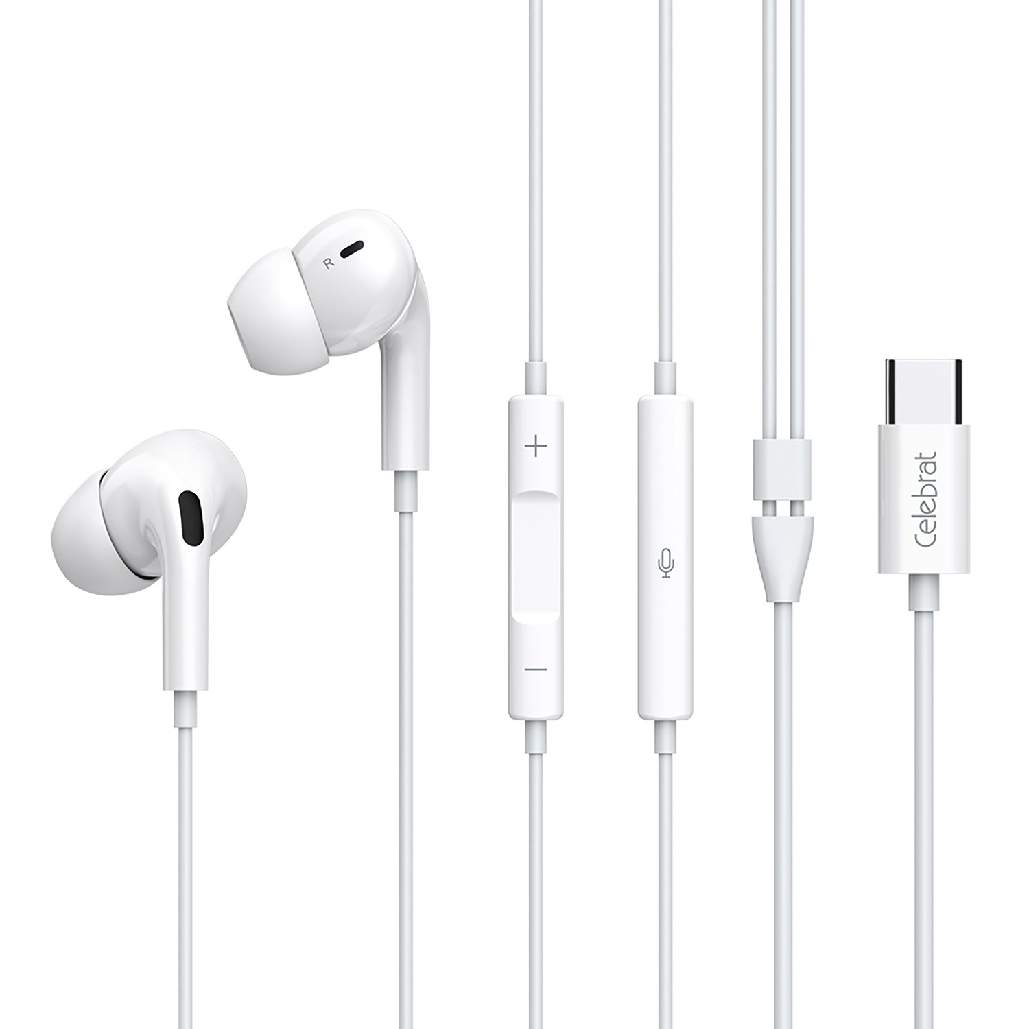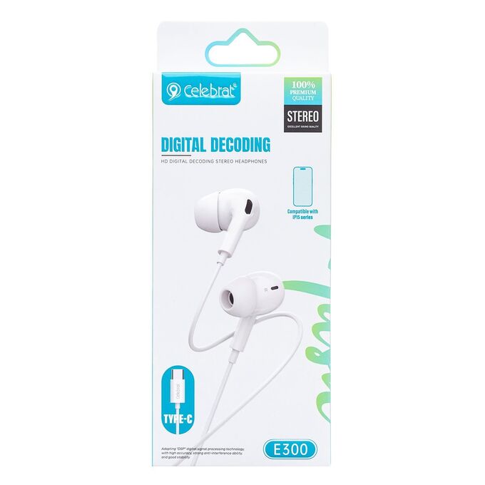 Проводные наушники с микрофоном внутриканальные Celebrat E300 Type-C (white) (243925)