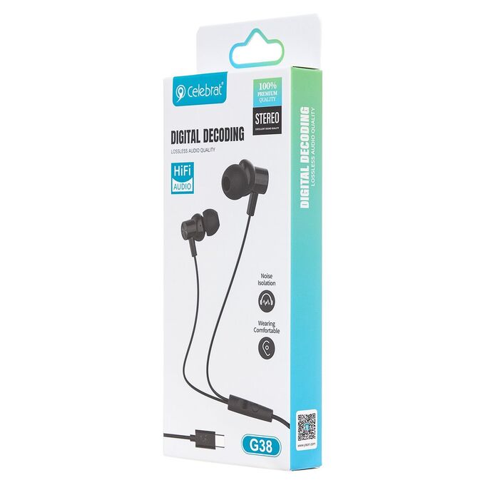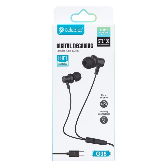 Проводные наушники с микрофоном внутриканальные Celebrat G38 Type-C (black) (243942)
