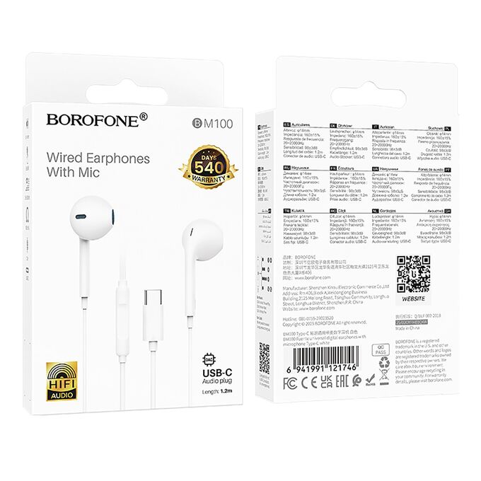 Проводные наушники внутриканальные Borofone BM100 Fuente Type-C (white) (241884)