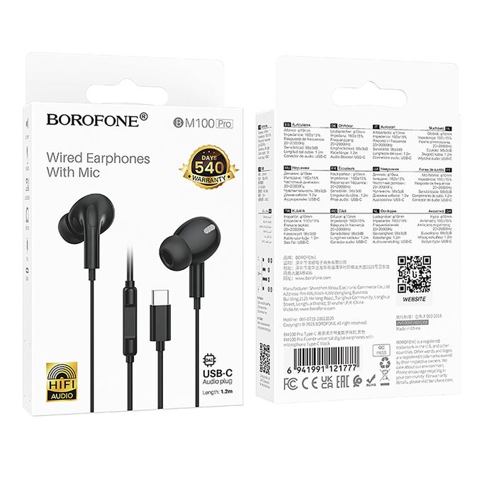 Проводные наушники внутриканальные Borofone BM100 Pro Type-C (black) (241885)