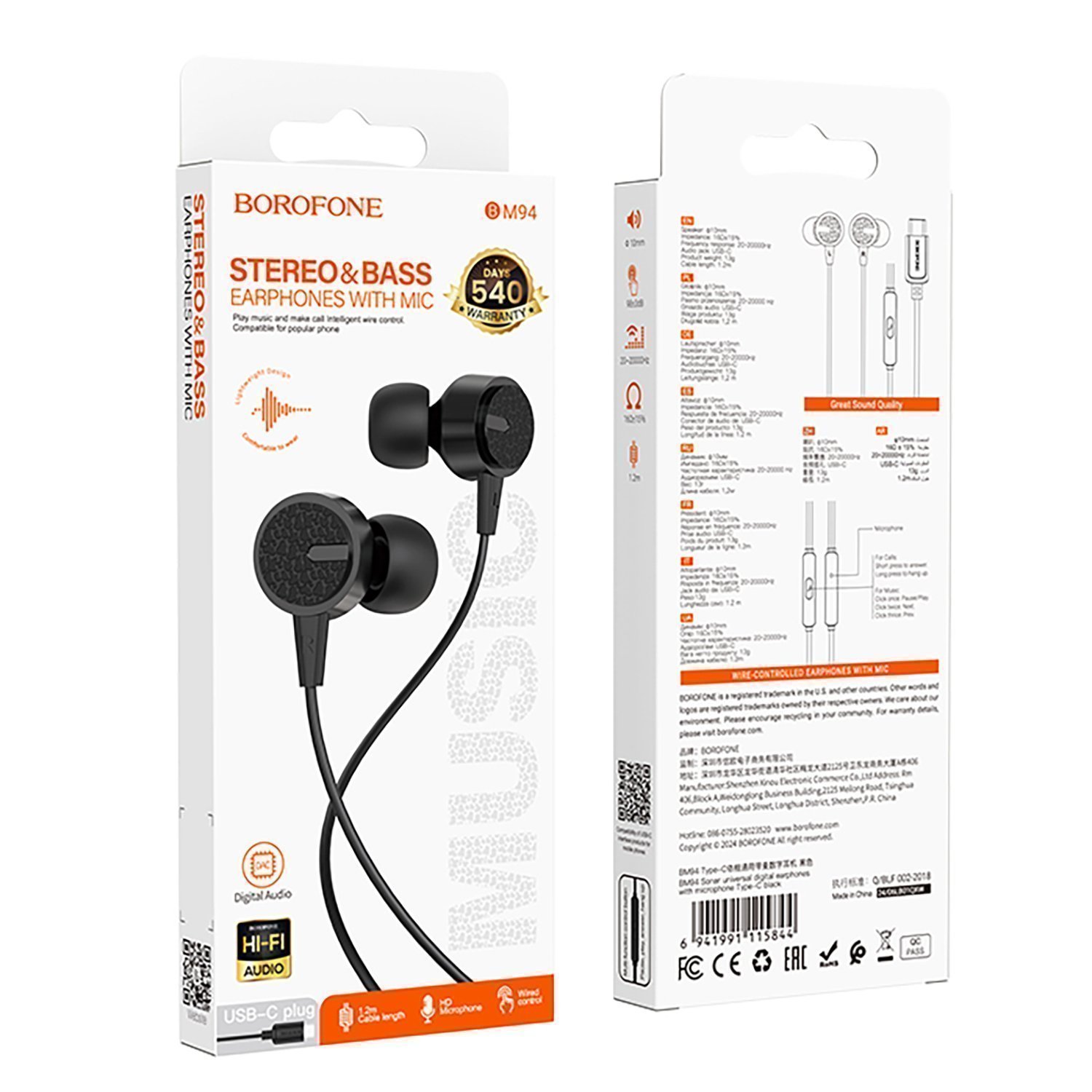 Проводные наушники внутриканальные Borofone BM94 Sonar Type-C (black) (241887)