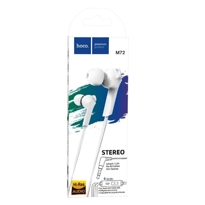 Проводные наушники внутриканальные Hoco M72 Admire, 3.5 Jack (white)