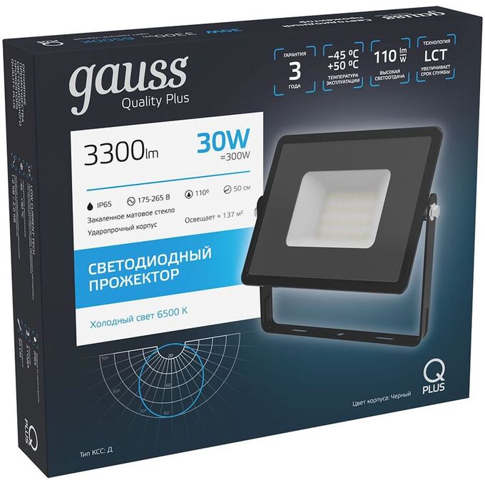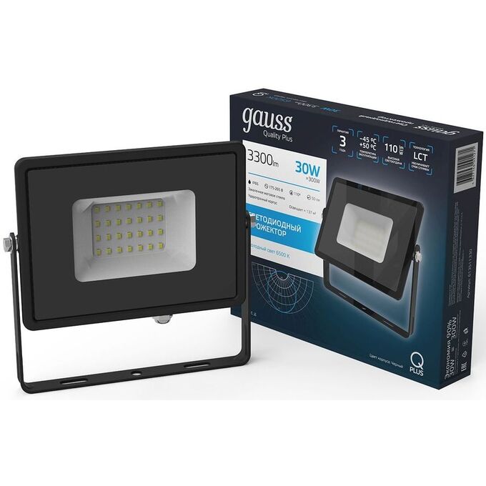 Прожектор Gauss Qplus уличный светодиодный 30Вт корп.алюм.черный (613511330)